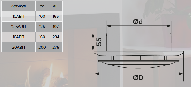 10АВП, Анемостат вытяжной регулируемый с фланцем АБС D100