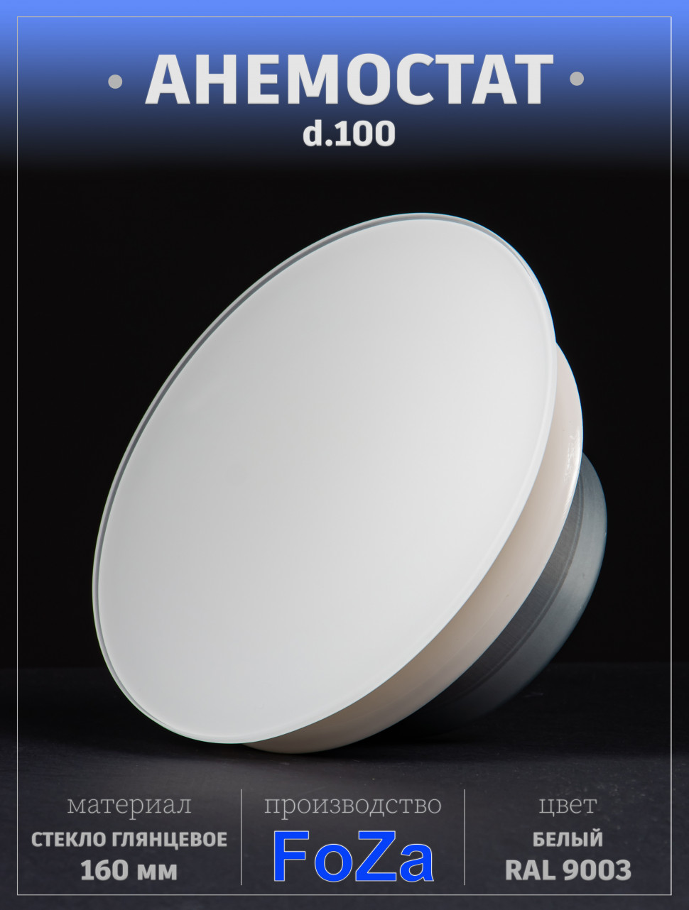 Анемостат со стеклянной внешней частью FOZA D 100 мм. RAL 9003. Круглый