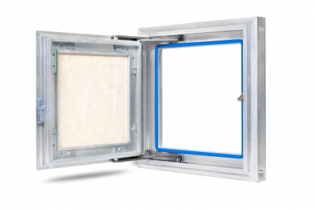 Рама люка для ревизии «Триумф» выполнена из алюминиевого профиля коробчатой формы и Г-образной в сечении для максимальной жесткости и удобства монтажа. Дверца люка изготавливается и алюминиевого профиля Т-образной формы, переменного сечения, с выраженными ребрами жесткости, что делает её конструкцию более жесткой в отличие от своих предшественников. Так как немаловажно исключить перекосы конструкции дверцы, чтобы не допустить деформации наклеенных на нее материалов. В отличие от наших конкурентов, толщина стенок алюминиевого профиля у нас по-прежнему 2 мм и более.