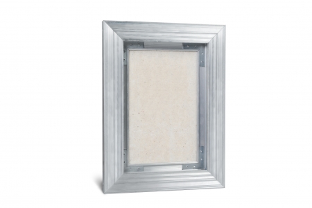 Рама люка для ревизии «Триумф» выполнена из алюминиевого профиля коробчатой формы и Г-образной в сечении для максимальной жесткости и удобства монтажа. Дверца люка изготавливается и алюминиевого профиля Т-образной формы, переменного сечения, с выраженными ребрами жесткости, что делает её конструкцию более жесткой в отличие от своих предшественников. Так как немаловажно исключить перекосы конструкции дверцы, чтобы не допустить деформации наклеенных на нее материалов. В отличие от наших конкурентов, толщина стенок алюминиевого профиля у нас по-прежнему 2 мм и более.
