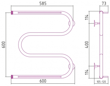Полотенцесушитель водяной Стилье М-образный 600x600 + 2 полки