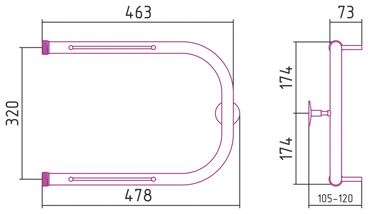 Полотенцесушитель водяной Стилье П-образный 320x450 резьба-cгон 1" + 2 полки