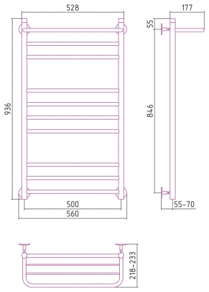 Полотенцесушитель водяной Стилье Универсал-57 1000x500