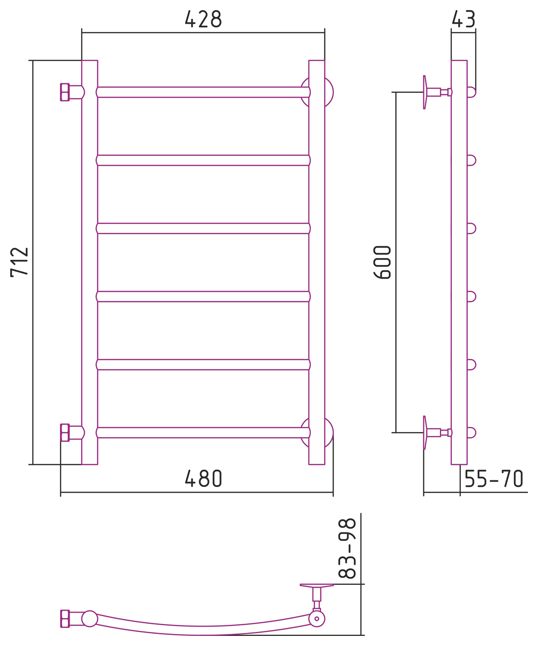 Полотенцесушитель водяной Стилье Версия-Б2 600x400