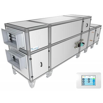 - Приточно-вытяжная установка напольного типа с противоточным пластинчатым рекуператором, системой защиты от замерзания.