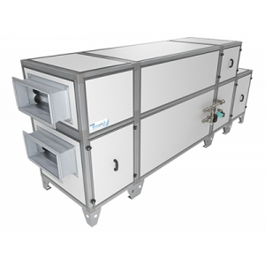 - Приточно-вытяжная установка напольного типа с противоточным пластинчатым рекуператором, системой защиты от замерзания, эффективный рабочий температурный диапазон до -35°С).