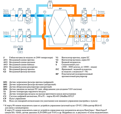 - С системой защиты от замерзания и система разморозки рекуператора.