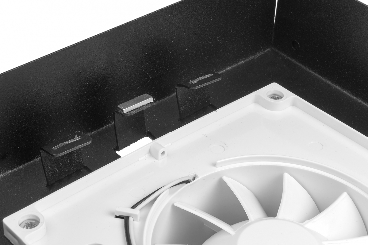 Теневой диффузор под плитку FoZa 207х207 с вентилятором на шарикоподшипнике 100СНК, обратный клапан, таймер+датчик влажности, черная, 100мм