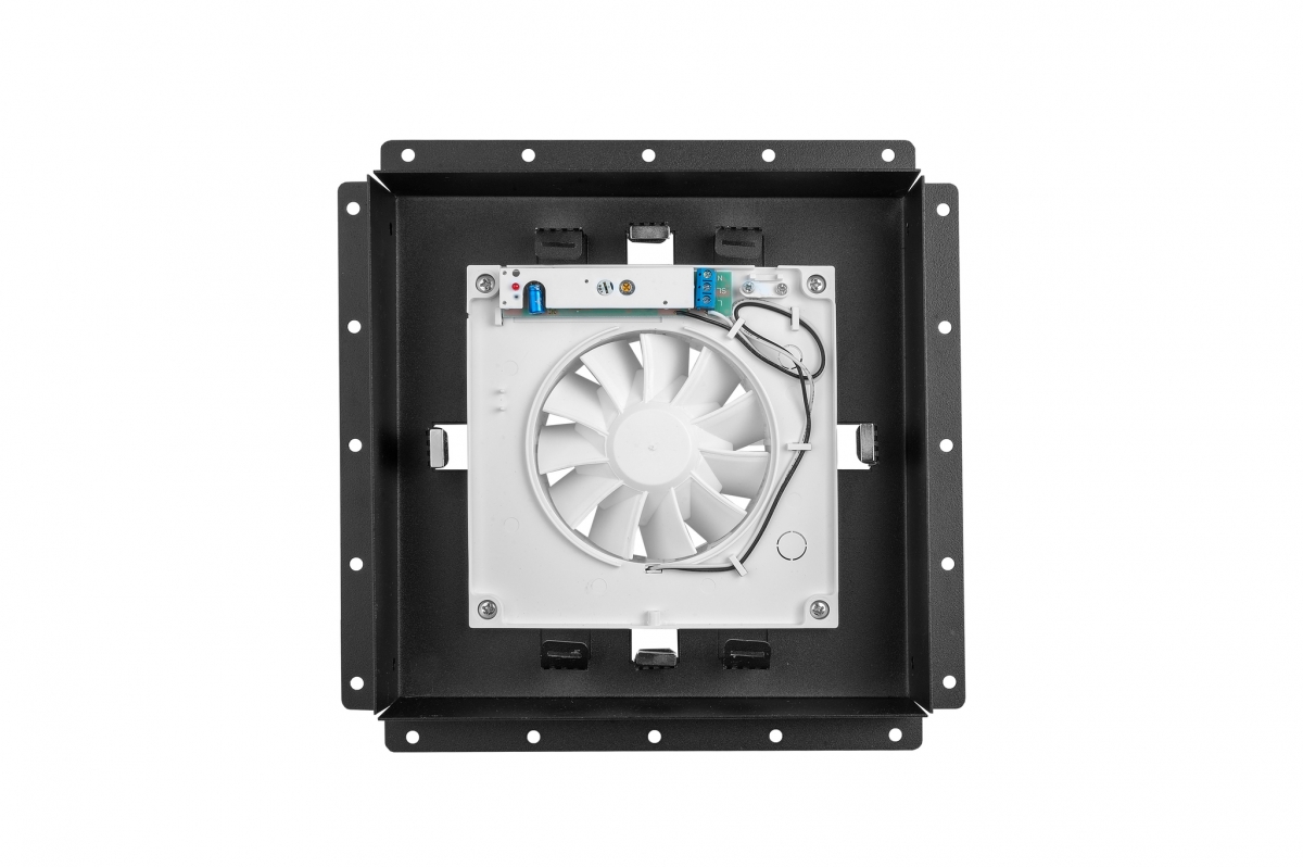 Решетка скрытого монтажа FoZa ПОД ПЛИТКУ 237х237 с вентилятором 125СНК, обратный клапан, таймер+датчик влажности, черная, d125мм