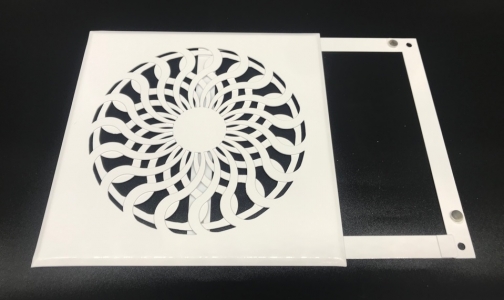 Решетка устанавливается на проем сечением 110х110мм и имеет внешний габарит 150х150мм