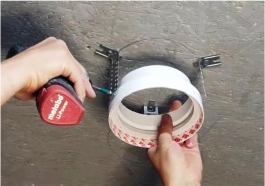 В потолке из гипсокартона, или натяжного потолка под датчиком дыма монтируется наш диффузор.