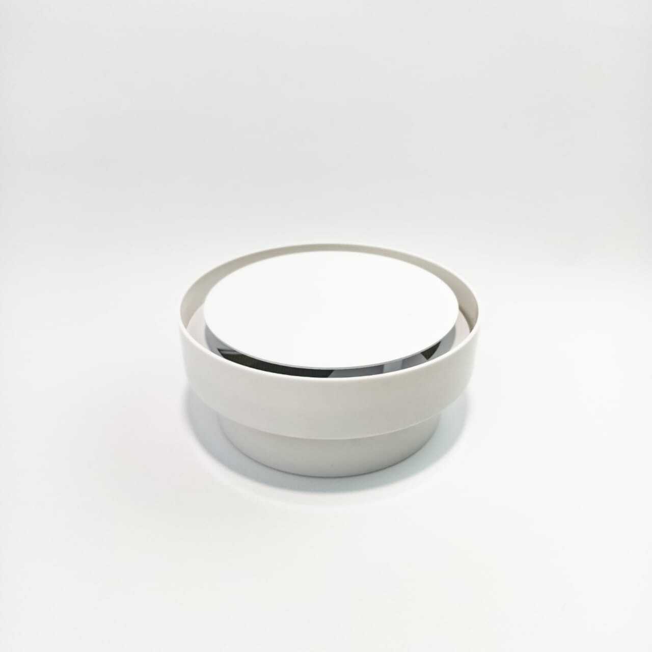 Диффузор состоит из пластикового перехода, металлической заслонкой, которой можно регулировать поток воздуха, либо полностью перекрыть его. К заслонке с помощью магнитов крепится декоративная круглая панелька, которую можно покрасить в цвет потолка. Так же по ободку диффузора имеется надёжный двухсторонний скот марки 3М, к которому крепится полотно натяжного потолка. Наши диффузоры оснащены москитной сеточкой, которая препятствует попаданию насекомых в помещение.