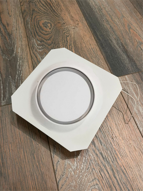 Диффузор состоит из пластикового перехода с площадкой позволяющей удобно и без проблем закрепить диффузор в гипсокартон. Диффузор рассчитан под гипсокартон толщиной 12 мм.