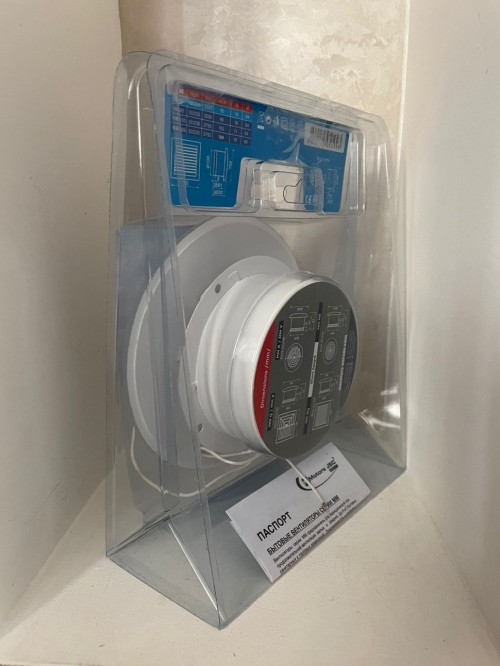 - Вентилятор из белого глянцевого стекла накладного типа.