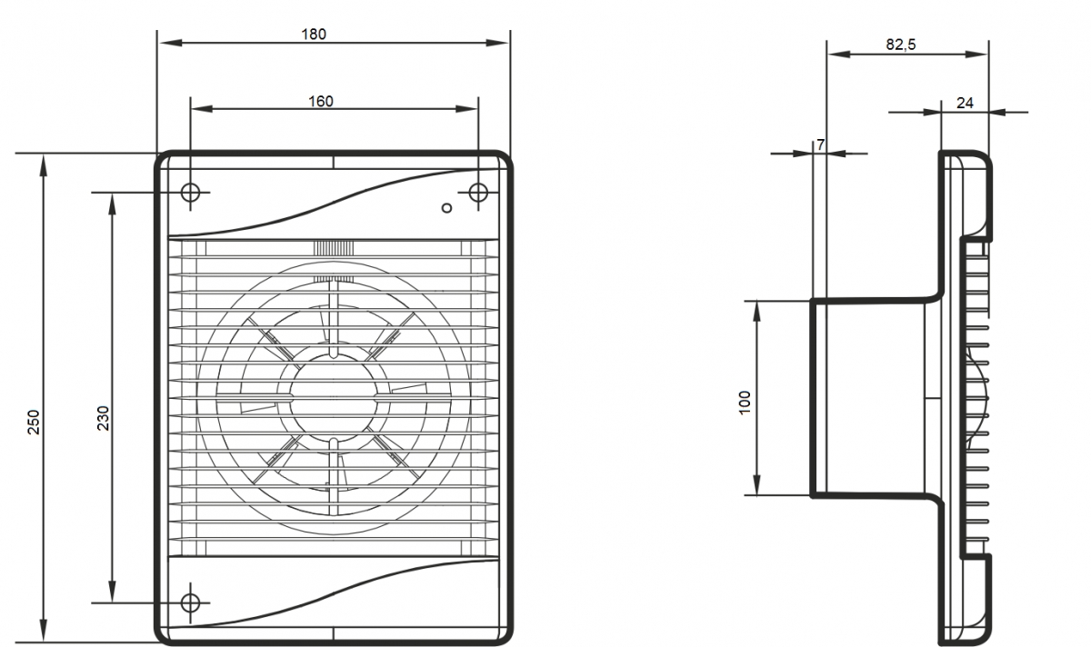 Установочные размеры вентилятора Вентилятор ERA DiCiTi STANDARD 4 позволяют закрыть вентиляционное отверстие 180*250мм, наиболее часто встречающееся в панельных домах;