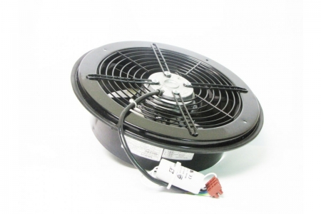 Осевой монофазный вентилятор выпускается нескольких типоразмеров и является продуктом высокотехнологичного производства. Корпус вентилятора выполнен из металла, окрашен порошковой эмалью в черный цвет. При изготовлении данного вентилятора использован внешний роторный двигатель. Оснащен съемной круглой решеткой, которая может быть легко снята для очистки и другого обслуживания. Направление потока воздуха осуществляется по направлению часовой стрелки. Скорость потока воздуха можно отрегулировать с помощью дополнительного контроллера. Дополнительно оборудован термоконтактом, что защищает двигатель от перегрева. Вентиляторы применяются для охлаждения наружных блоков кондиционеров, чиллеров, электрических панелей и различных теплообменников в жилых, производственных, офисных, торговых зданиях, ресторанах и пр. Вентилятор предназначен для эксплуатации в помещениях с температурой не более 72 С и относительной влажности до 80 %.