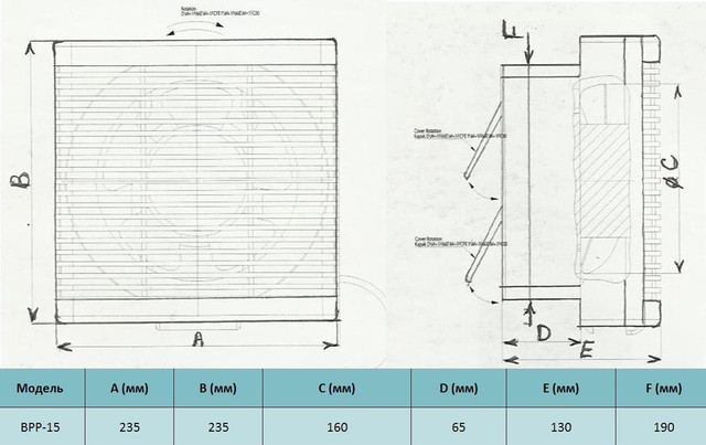 Габаритные размеры вентилятора Bahcivan BPP-15